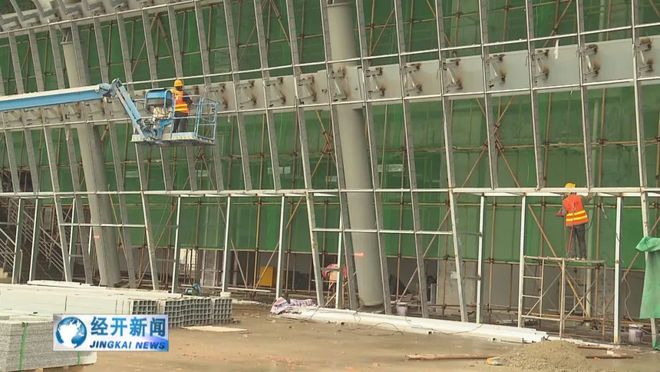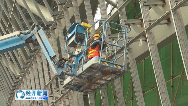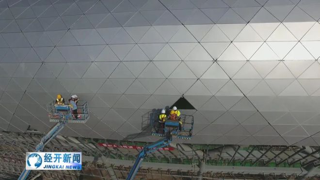 记者来到建设现场,看到类似鸟巢的体育中心已基本建成。目前,工人们正在进行内部装饰装修以及铝单板的安装工作。