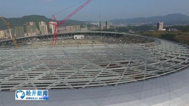 巴中市体育中心建设总工程师 汪庆发: 目前已经完成了三分之一的工程量,现在主要安装铝单板这一块,包括幕墙的龙骨,预计今年年底外面的玻璃外墙全部安装完成,再一个钢结构工程在九月九号完成验收,现在正在施工的是钢结构的,体育中心的屋面工程 。