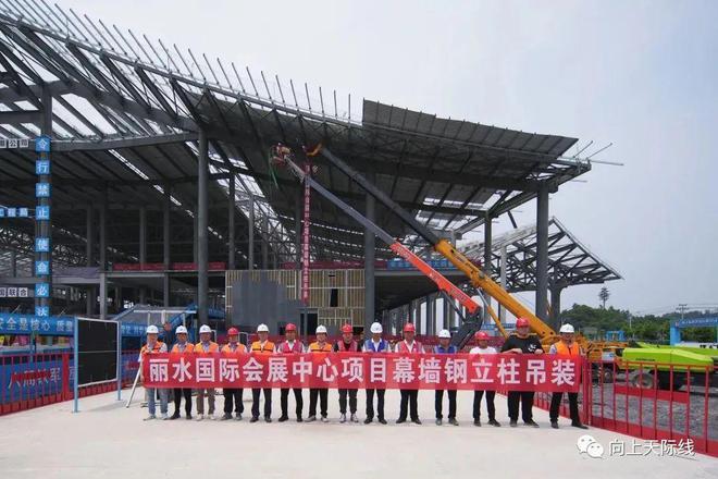 6月13日 中建八局总承包公司丽水国际会展中心项目 装饰幕墙钢立柱顺利完成首吊 正式拉开了项目装饰装修施工的序幕 吹响了加快项目建设的冲锋号!