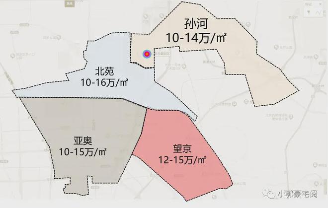望京、亚奥商圈已经多年没有新房供应,项目周边二手房挂牌价在10-15万/㎡,距离本项目3公里的望京金茂府、臻园价格在12-13万/㎡杏彩体育,望京豪宅均价12-15万/㎡,新北苑12万+/㎡,孙河10-13万/㎡,亚奥10-17万/㎡。望京国誉府以9万+的价格,填补市场空白,相较二手房市场,拥有2万+的价格差,优势明显。