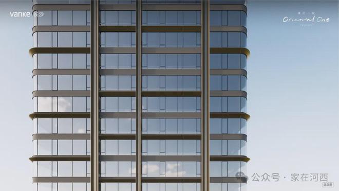 其次,圆弧转角造型也是万科濱江一號的标志性立面元素。主立面、玻璃幕墙拐角处、层间铝板线条、转角窗扇无处不见这种圆润柔和的语言表达。