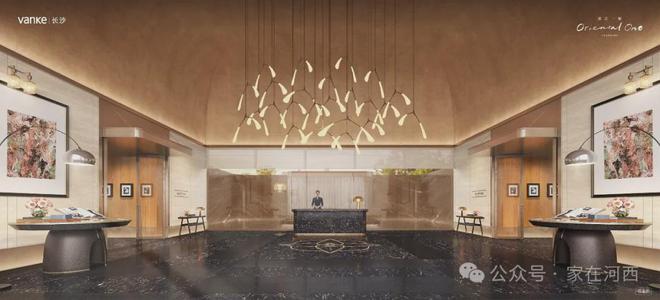万科通过精美艺术画、多种石材、艺术吊灯、嵌入项目超级符号对单元入户大堂进行装饰,让归家体验充满仪式与艺术感杏彩体育。